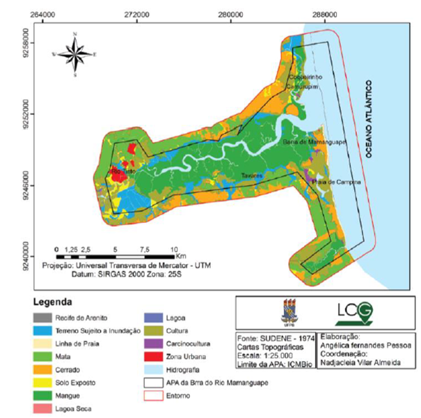 Mapa da APA do Rio Mamanguape. Fonte: Almeida e Silva (2016) apud Cesar e Silva (2022).